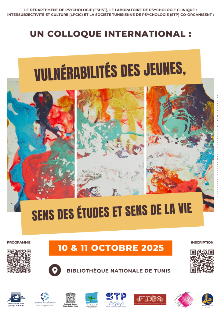Co-organisé par le Département de Psychologie de la Faculté des Sciences Humaines et Sociales de Tunis (Université de Tunis), la Société Tunisienne de Psychologie (STP) et le Laboratoire Psychologie Clinique: Intersubjectivité et Culture (LPCIC).