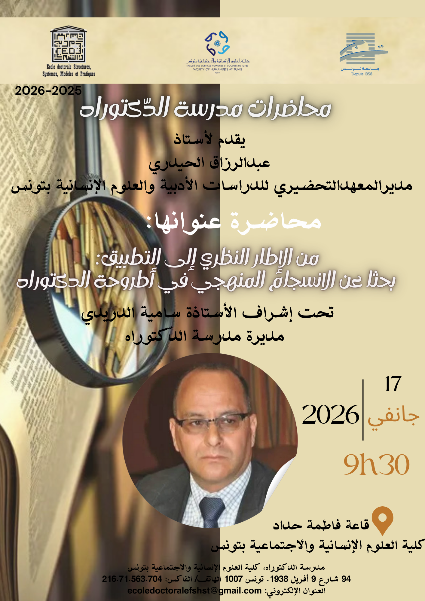 محاضرة بعنوان من الإطار النظري إلى التطبيق: بحثا عن الانسجام المنهجي في أطروحة الدكتوراه